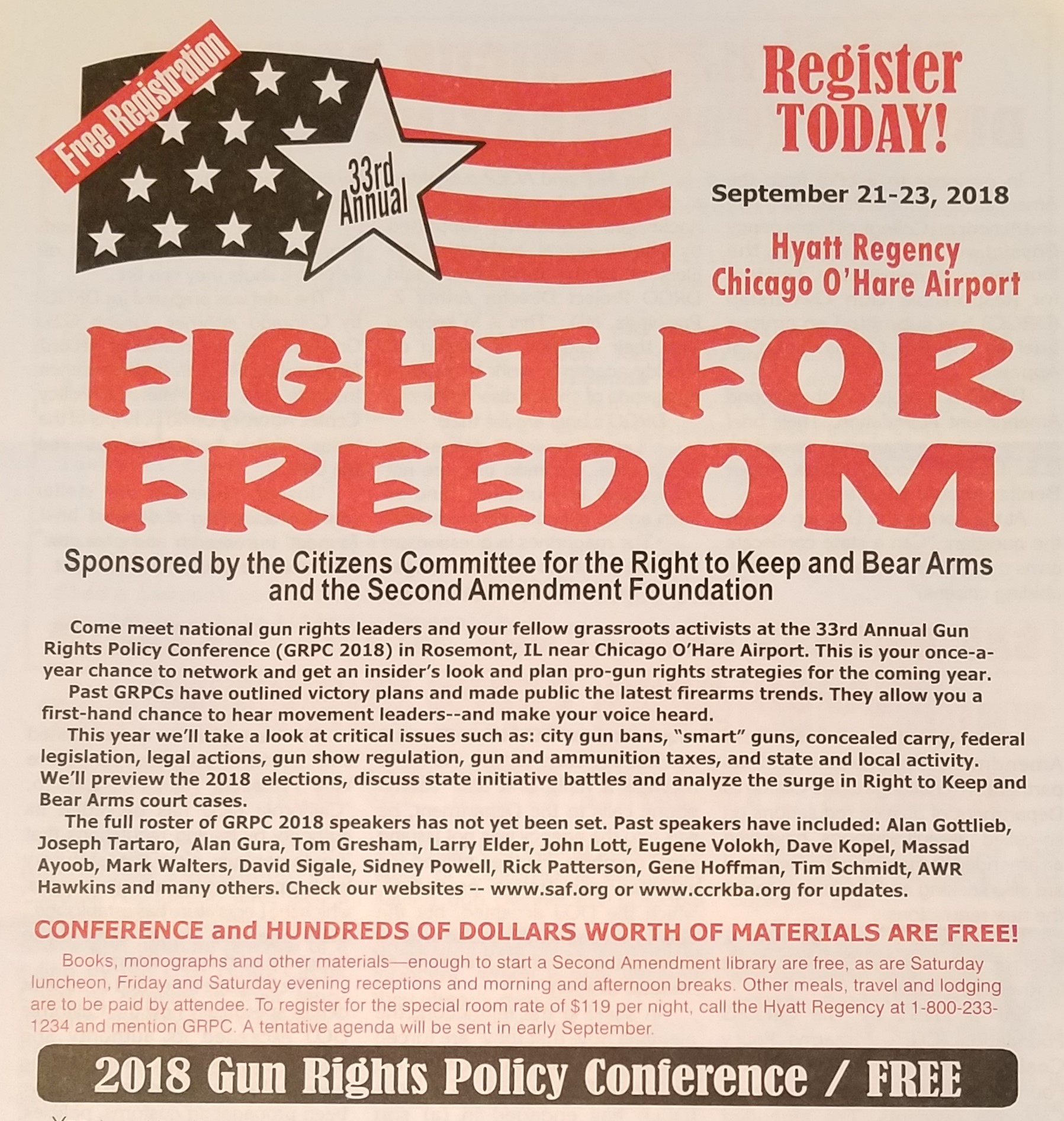 This is a great event surrounding our 2 Amendment to “Keep and Bear Arms”; to learn & understand about Concealed carry, firearms, the good works of Second Amendment Foundation, plus networking and interacting with media.