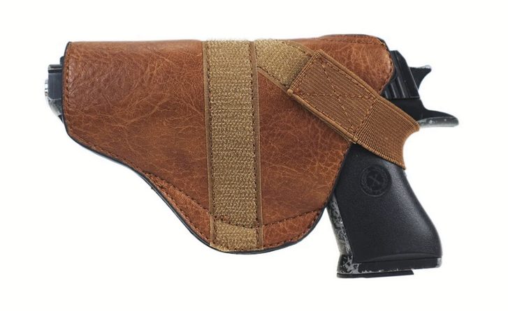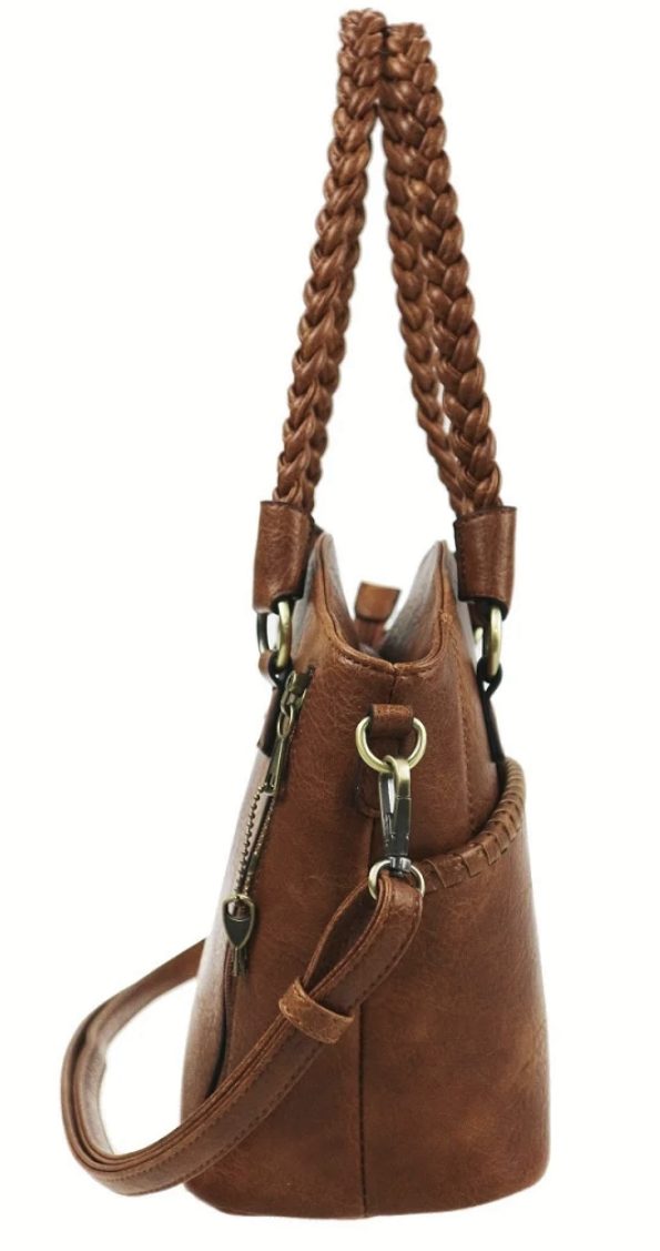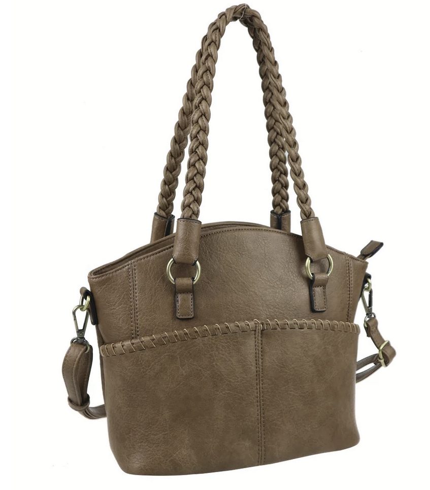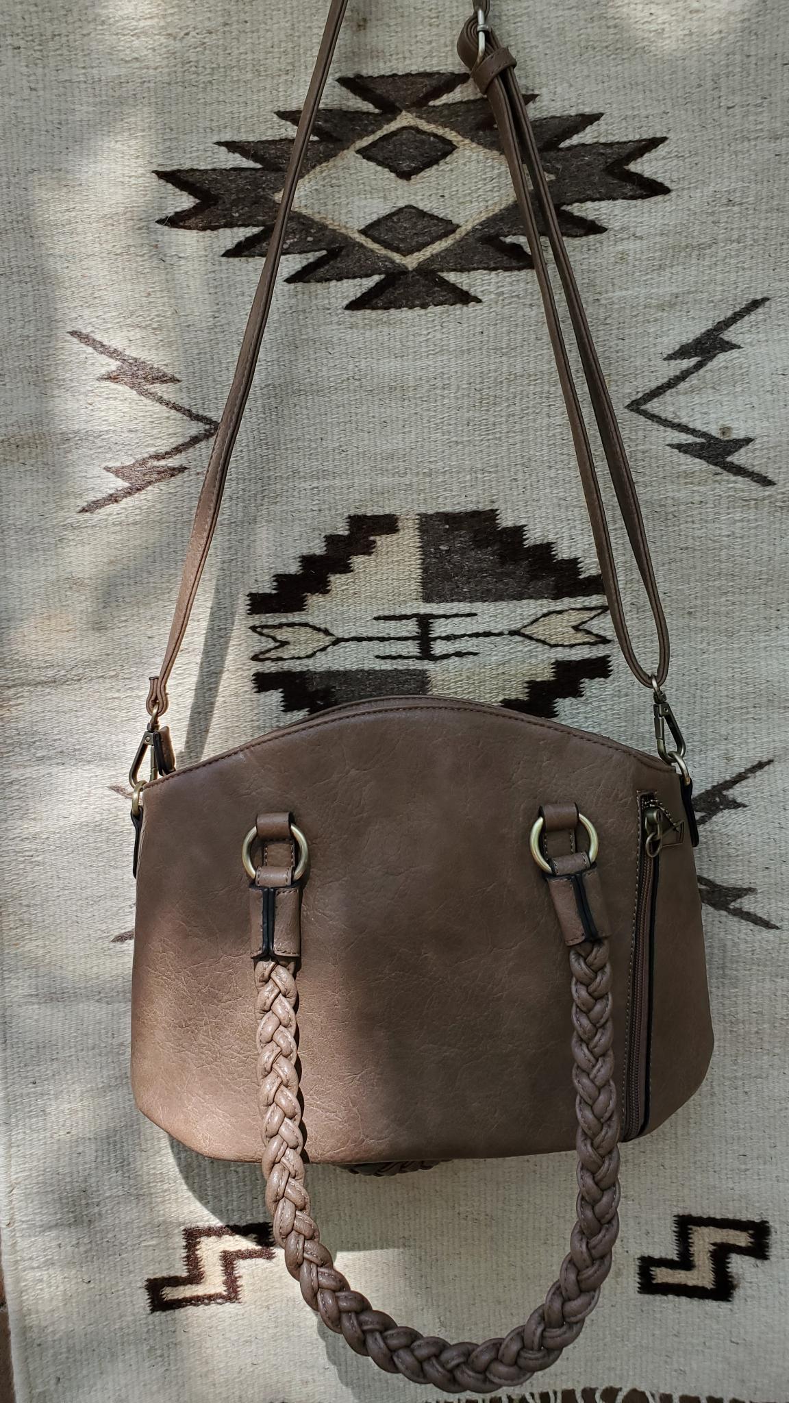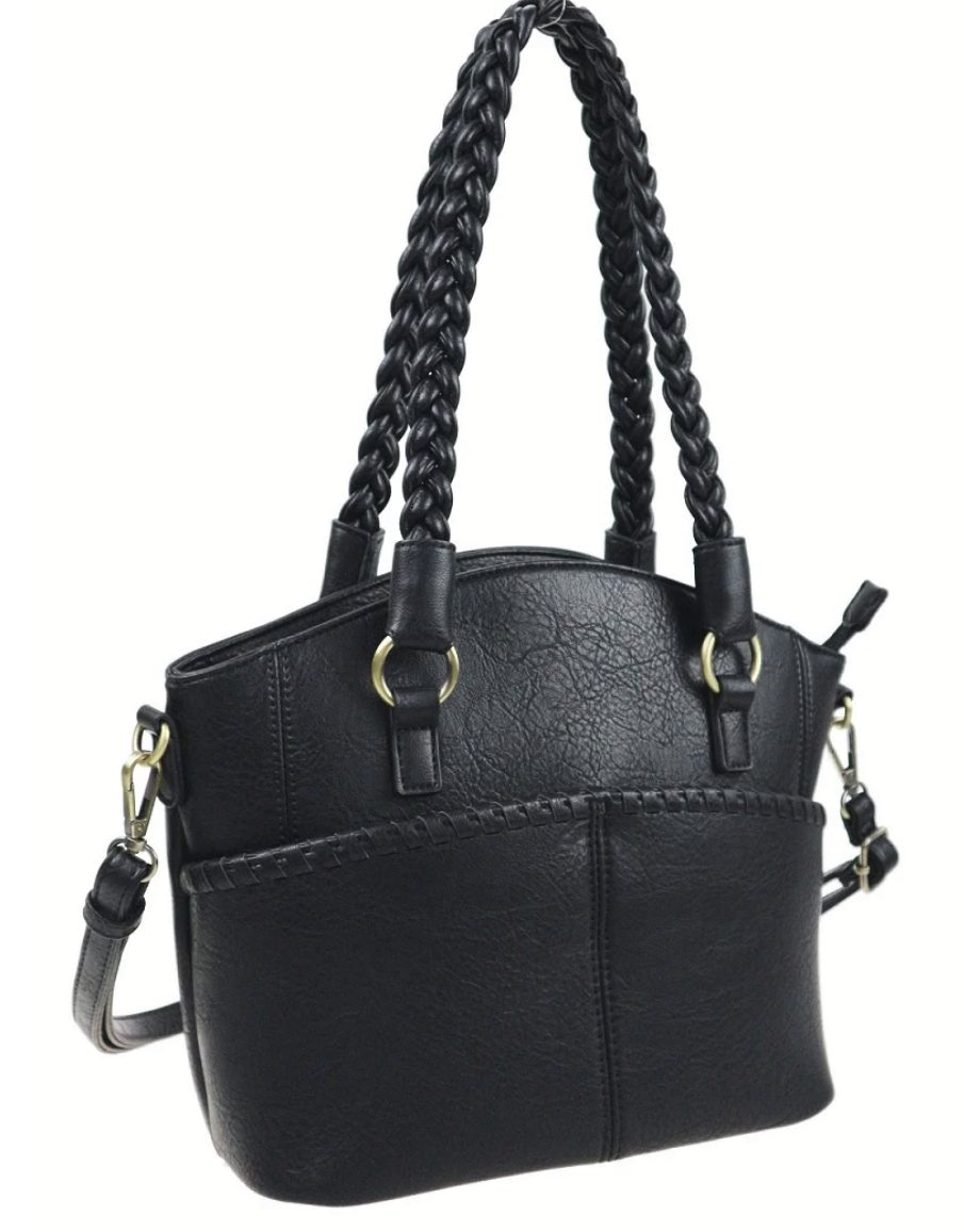 Woven double handled bag with detachable shoulder strap gives you so many ways to carry in this concealment bag. A separate back pocket with matching removable holster.
